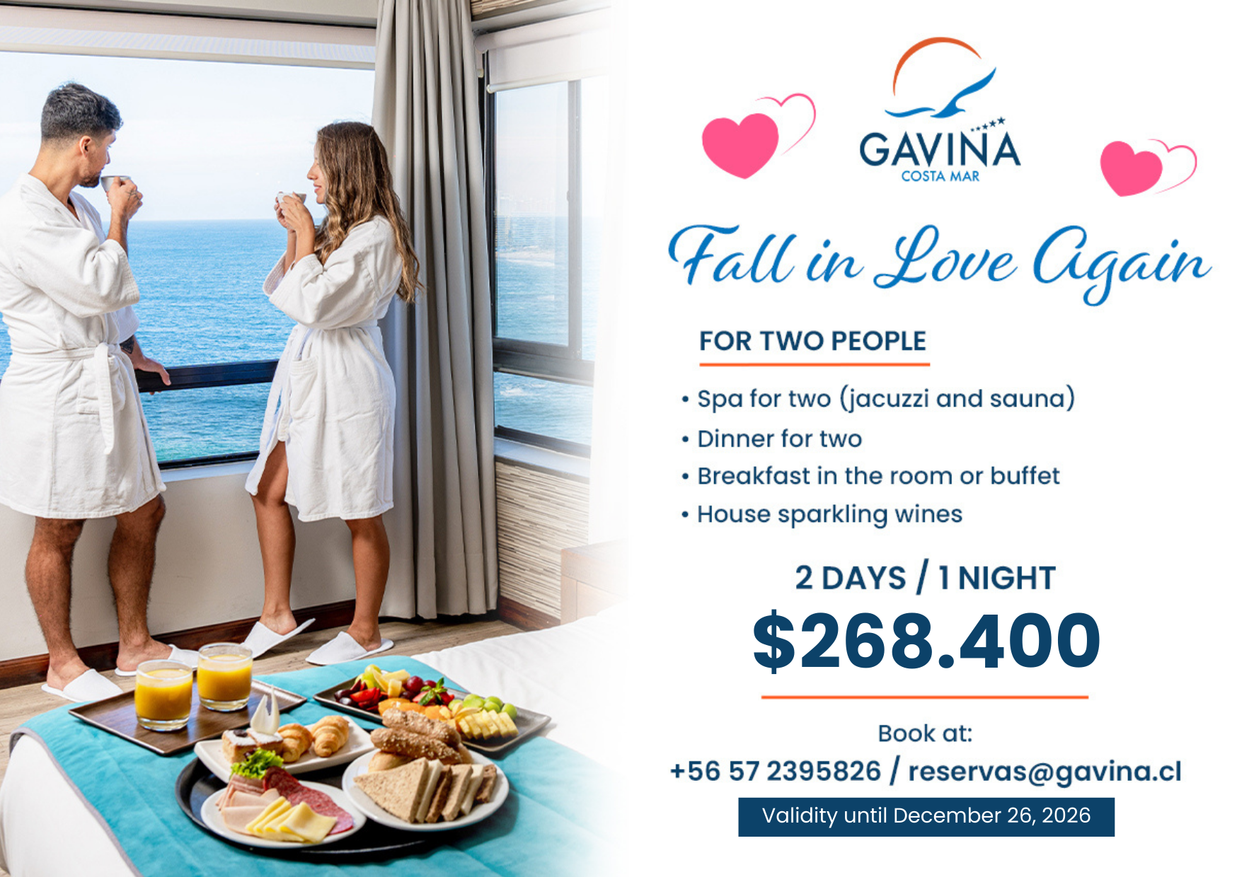 Certified with three international accreditations and being the only 5-star hotel in the Tarapacá region, Gavina Costa Mar ensures a global standard of quality. Enjoy our modern facilities, which include an elegant infinity pool and a comprehensive Convention Center. It is also the perfect place for those who wish to practice surfing, paragliding, and sandboarding in an impressive setting.