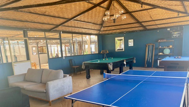 Its facilities include a game room with pool and ping-pong tables, sofas, and a TV, outdoor terraces for smokers, a quincho (barbecue area), a small gym, and ample free parking, specially prepared to accommodate buses, minivans, trucks, and vehicles of all types, whether for mining companies transporting their work teams, tourism companies, or the general public.