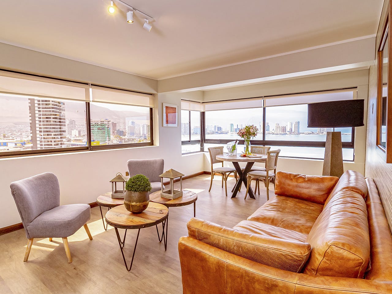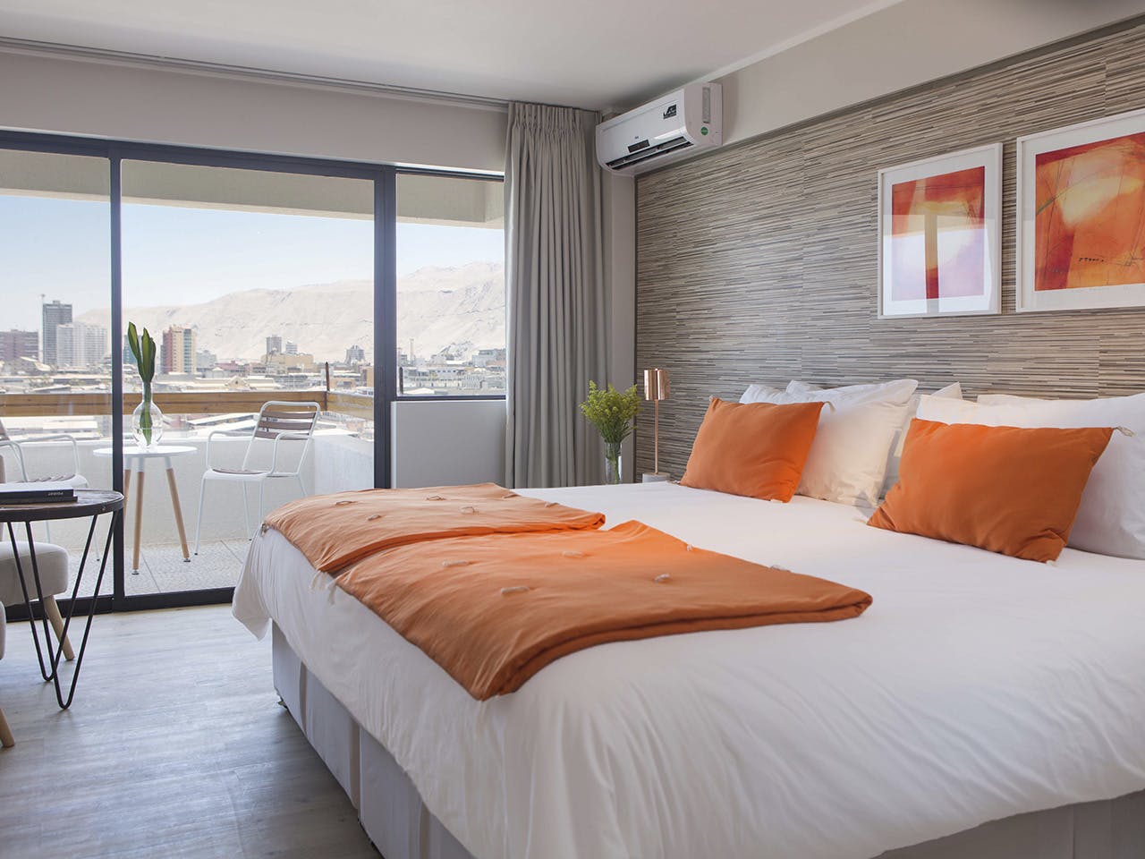 Nossos quartos possuem uma área de estar com vista para a cidade de Iquique e sua costa, minibar, conexão WIFI e mais. Possui cama King ou duas camas Twin. Inclui café da manhã buffet no restaurante Terrazas del Mar.