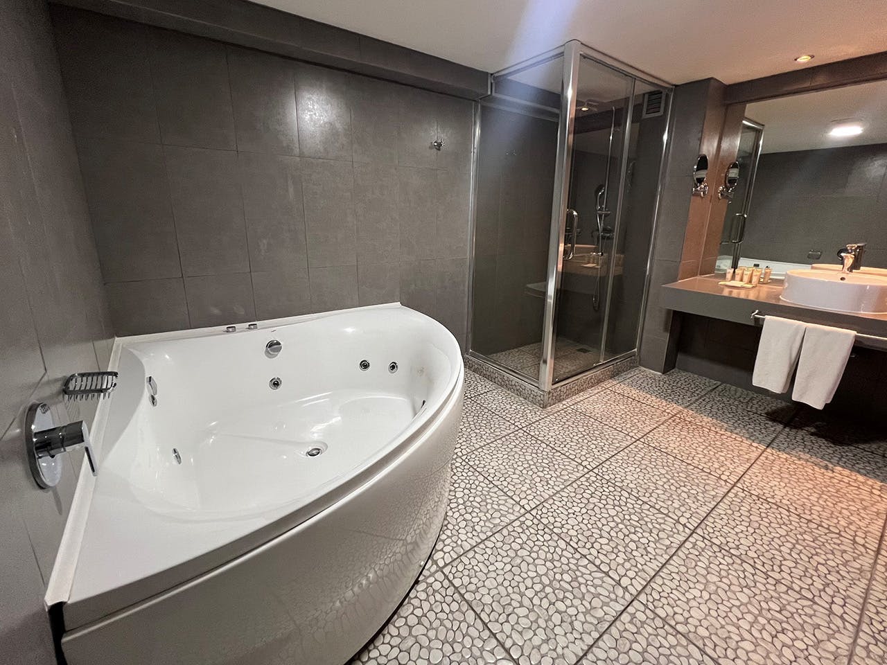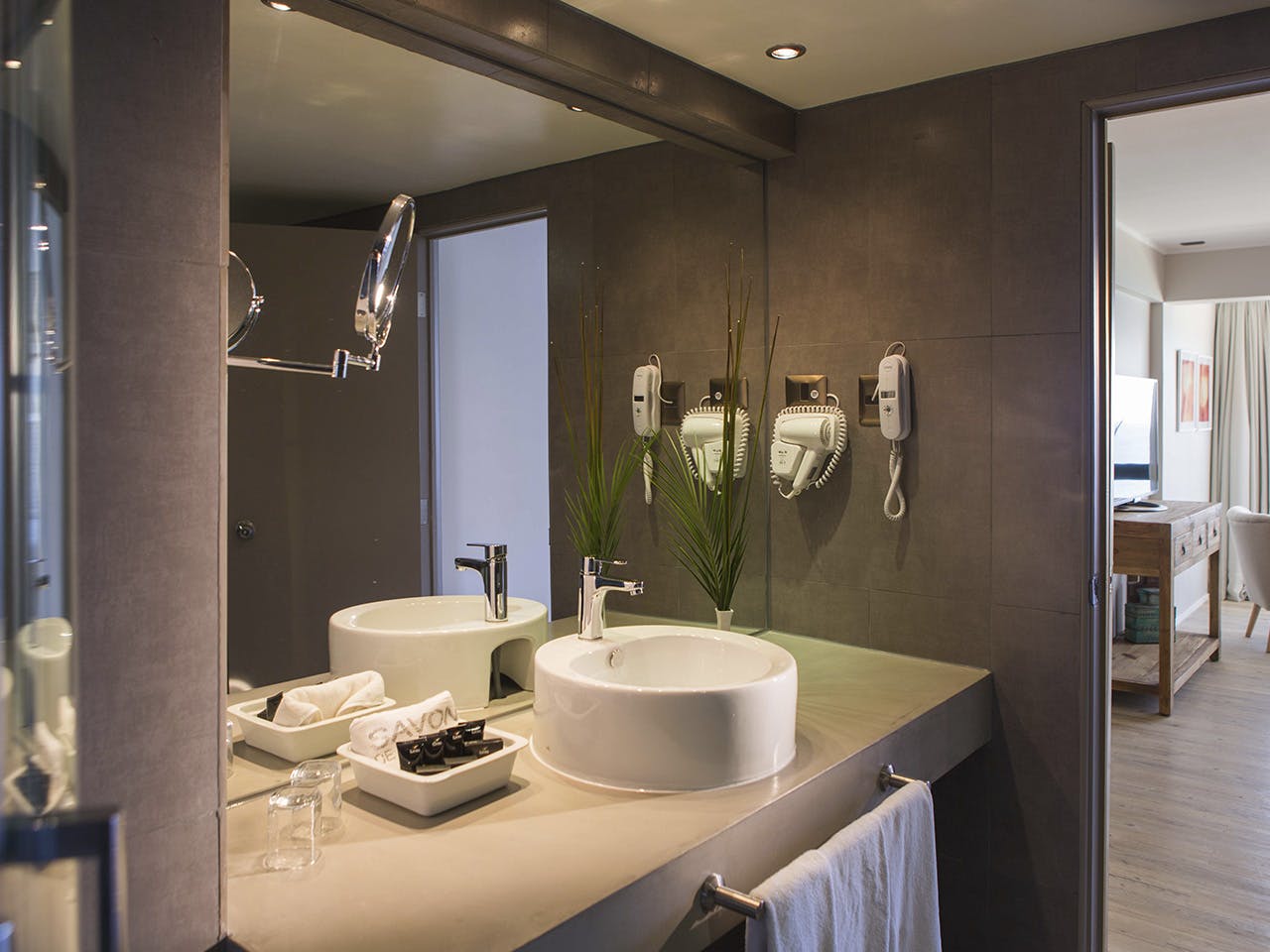 Nossas suítes são espaçosas e oferecem uma vista espetacular para o mar. Contam com uma sala de estar, um quarto separado com uma cama e dois banheiros com banheira e artigos de toalete gratuitos. Além disso, dispõem de ar condicionado, TV de tela plana com canais a cabo, área de estar, armário e cofre.