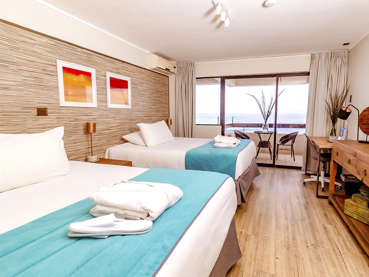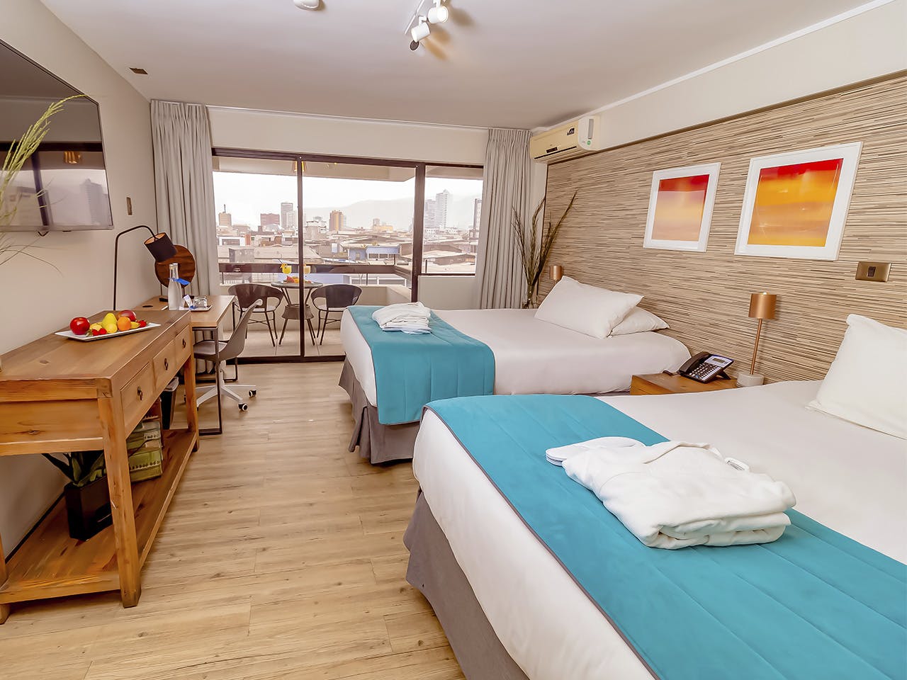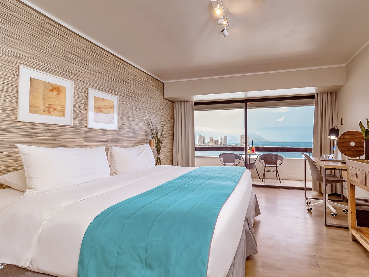 Nossos quartos oferecem uma bela vista da cidade de Iquique e da sua costa, além de comodidades como TV LED, internet sem fio, cofre, mini-frigorífico, mesa de trabalho e mais. Possui cama King ou duas camas Twin. Inclui café da manhã buffet no restaurante Terrazas del Mar.